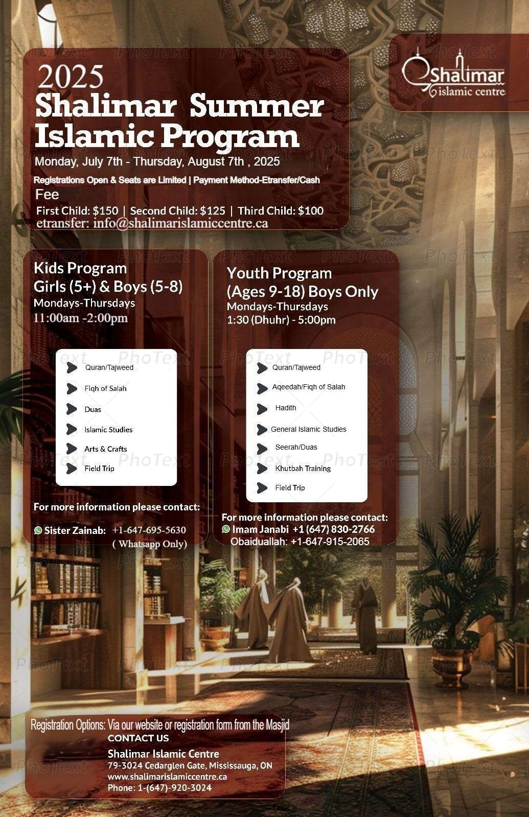 Shalimar Islamic Centre was founded in 1995, a step towards bringing people from darkness to the light of Qur’an and Sunnah. Shalimar Islamic Centre focuses on the correct methodology of Prophet Muhammad (peace be upon him) and his companions.